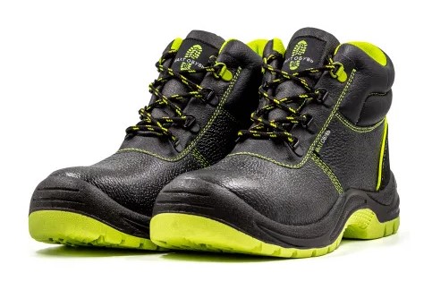 Демисезонные защитные ботинки на двухслойной ПУ/ПУ (полиуретановой) подошве. Обувь изготовлена из натуральной прорезиненной юфтевой кожи высокоустойчивой к воздействию агрессивных внешних факторов. Носок защищен металлическим подноском с ударной нагрузкой до 200 Дж. Подкладка ботинок из дышащей трехслойной 3D AirMesh ткани цвета лайм. Подошва изготовлена литьевым методом, устойчива к воздействию кислотно-щелочных веществ (до 20%), масло-бензольных соединений и нефтепродуктов. Рабочая температура эксплуатации ботинок от -35°С до +85°С. Дополнительный комфорт для ног и защиту от ударных нагрузок обеспечивают амортизатор в пяточной части ботинка, усиленный протектор.